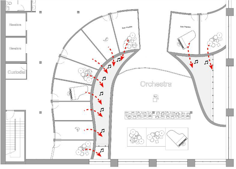 The CHIArts Project is the readaptation of an existing building in the corner of N Des Plaines Street and W Fulton Market Street. The proposal is to adapt and add to the building to fit the Chicago High School for the Arts and incorporate all of the School's needs within the building for regular class load and classes that are related to performing arts such as a Music Conservatory, Theater, Visual Arts, Dance and among others. The concept for the project focus on the creation of at the same time a division for better acoustic privacy for each conservatory and a connection visually that allows the flow of creativity among students from different conservatories. The interior structure was adapted to create an Atrium like element with Structural characteristics to it and considered as a "vessel" for energy movement (light and sound) containing openings for visual connection between classrooms and different studies and also the flow and sound dispersion. An offset interior glass facade also gives space to connectiveness with bridges connecting the more private areas of the building in the small "island" created by the vessel with the rest of the building.